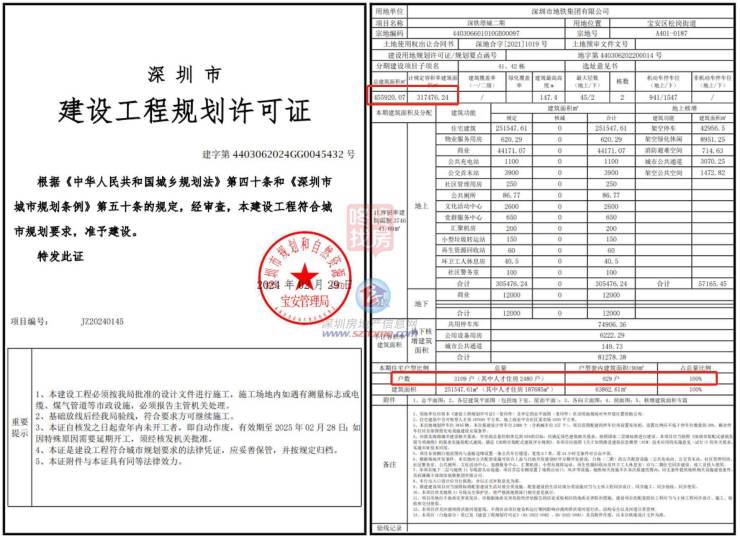近日,位于宝安的深铁璟城二期《建设工程规划许可证》及总平面图公布。