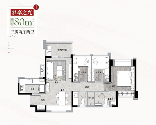 超强产品力打造,超80%得房率,极致空间使用,创新S墙户型设计,内嵌式冰箱,实用与美观于一体;创新LDK餐客厨连厅设计,无界互动家居场景;主卧套房设计,给予主人尊崇生活体验。