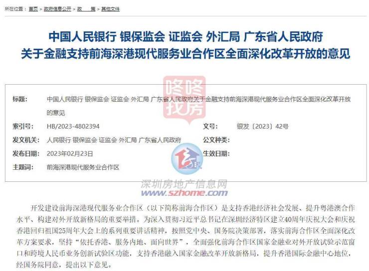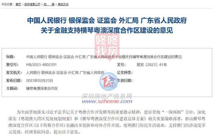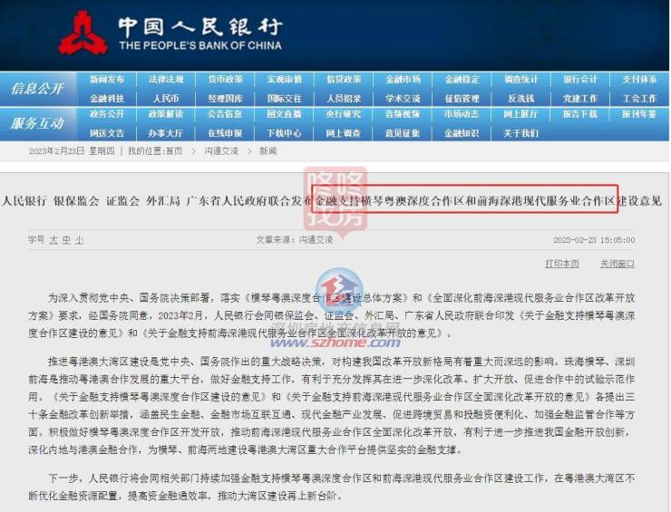 2月23日,人民银行会同银保监会、证监会、外汇局、广东省人民政府联合印发《关于金融支持横琴粤澳深度合作区建设的意见》和《关于金融支持前海深港现代服务业合作区全面深化改革开放的意见》。