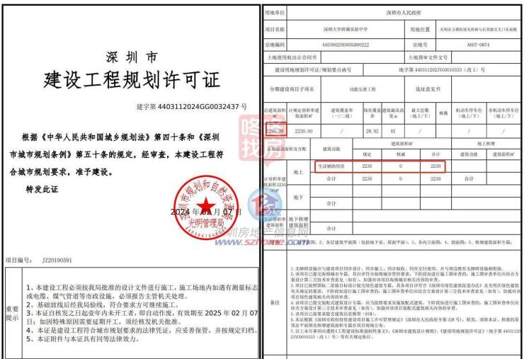 2月29日,深圳大学附属实验中学项目《建设工程规划许可证》及总平面图对外公布。