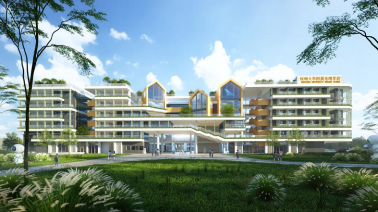 深圳大学附属实验中学项目(宗地号:A607-0874)位于光明区玉塘街道光侨路与长贵路交叉口东南侧,毗邻深大实验、深圳大学光明实验室,占地面积21650㎡,建筑面积58600㎡,学校办学规模为45个教学班,可提供2100个优质学位。