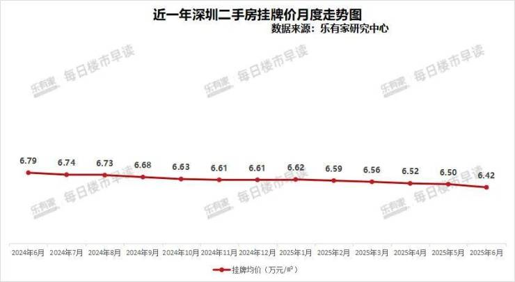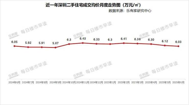价格方面,据乐有家门店成交数据计算,6月深圳二手成交价为6.03万元/㎡,环比小幅下降1.5%。淡季业主议价空间提升,价格小幅下调。