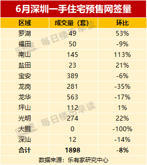 6月深圳一手住宅网签3274套,二手住宅网签4502套