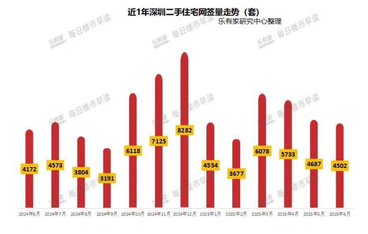 6月深圳二手住宅网签量为4502套,环比下降3.9%,同比增长7.9%。