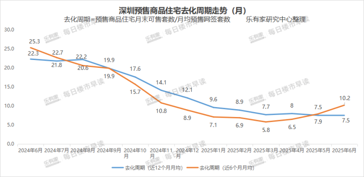 库存方面,截止6月底,深圳一手预售住宅库存量为25661套,相较5月底减少682套。按近12个月一手预售住宅月均去化速度(月均3412套)计算,去化周期为7.5个月。但目前深圳有30%左右的新房为现售,预售加上现售库存为新房总库存,按此算,深圳去化周期实际会更长一些。