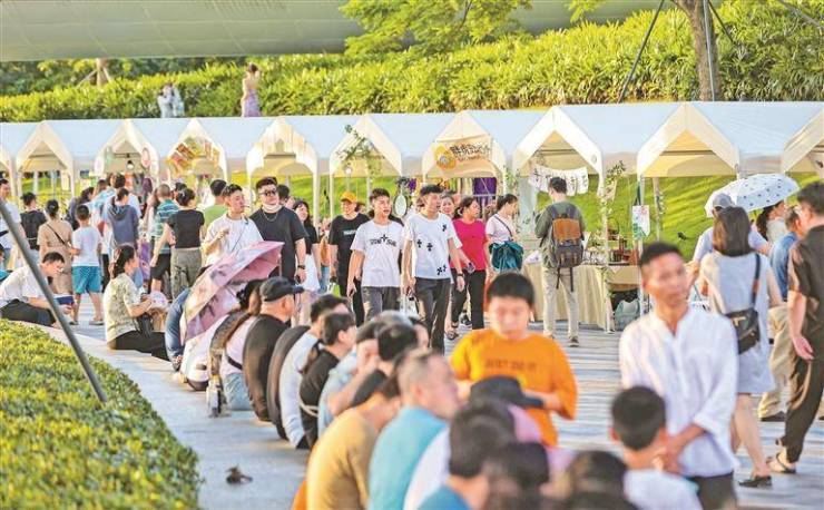 商圈活动精彩纷呈,带来多元消费体验。深圳市区商圈联动,提前谋划精心组织,举办夜间经济、浪漫主题、国潮艺术主题、深港消费、露营经济等特色活动,丰富假日消费场景,营造节日期间消费氛围,吸引大批市民游客前来游玩消费。数据显示,福田CBD商圈单日客流量高达78万人次,同比增长451%;华强北商圈单日客流量高达49万人次,同比增长378%。