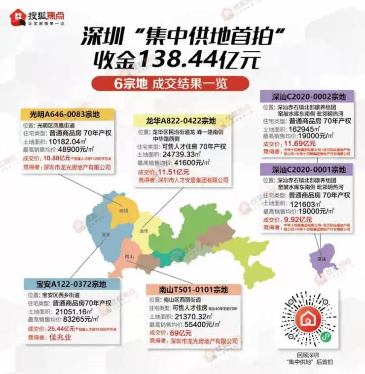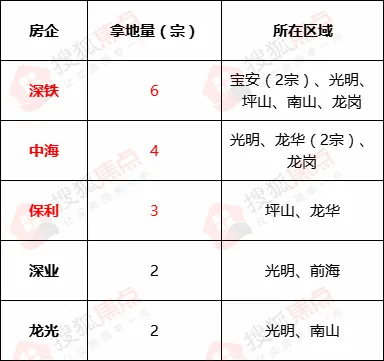 深业的2宗地分布在前海、光明05龙光的2宗地分布在光明、南山