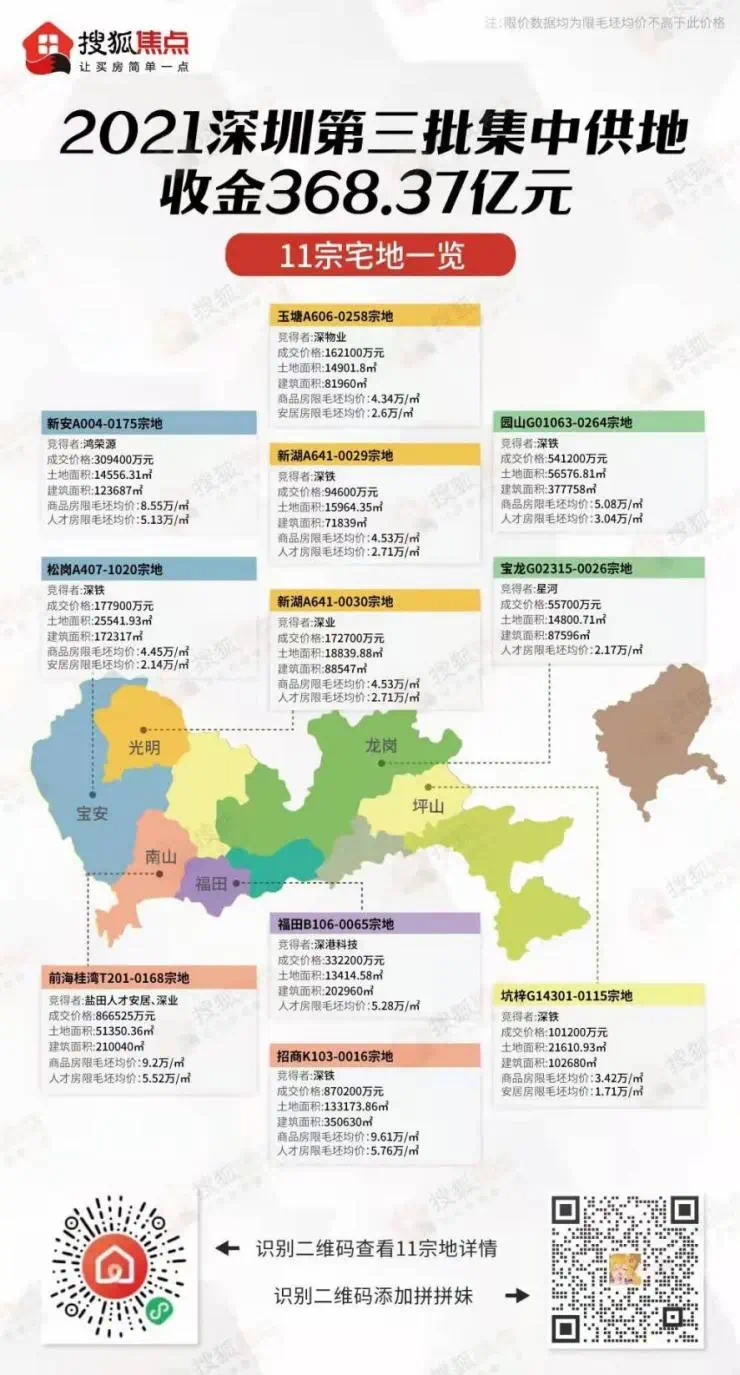 11月11宗宅地(其中2宗用于建设出售型人才住房),总土地面积约38.07 万平方米,总建筑面积约191.64万平方米,收金368.37亿!