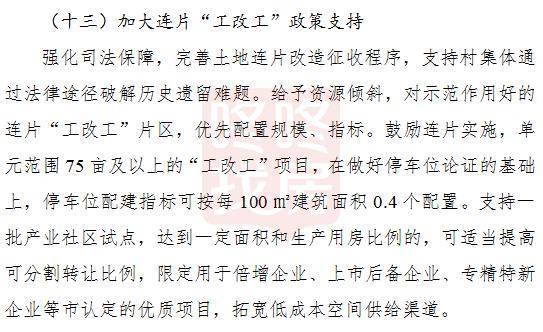 在联动申报与任务考核中,连片高质量“工改工”项目可获得核算系数加成。