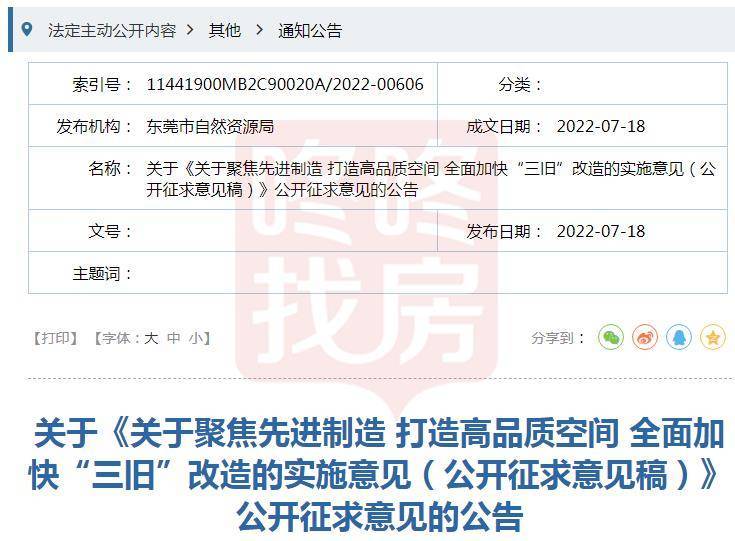 7月18日,东莞市自然资源局发布《关于聚焦先进制造 打造高品质空间 全面加快“三旧”改造的实施意见(公开征求意见稿)》(以下简称实施意见),公开征求意见。