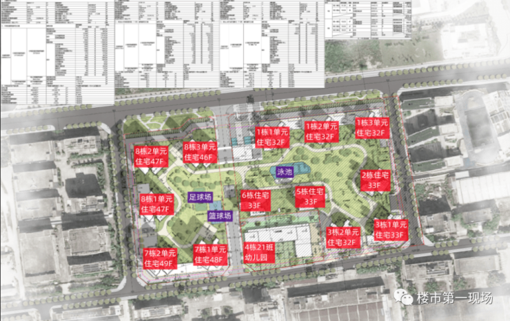 一期:1栋1-2-3单元,3栋2单元为商品房住宅32层;2栋,3栋1单元,5栋,6栋为商品房住宅33层,4栋为21班幼儿园,商品房有1360套,其中1228户为建筑面积90平以下刚需户型;