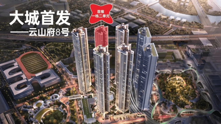 首发的住宅为08地块,备案名为「未来平方云山府」,包含5座58/59F住宅(1栋一二三+3栋一二单元),2座35F办公(4栋一二单元)及1所18班幼儿园。