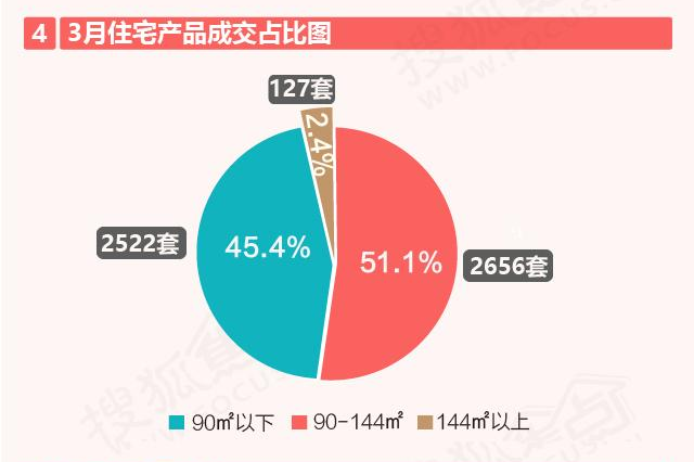 3月深圳共成交了5305套新房住宅,其中90-144㎡户型成交2656套,占比较高,占全市的50.1%;90㎡以下户型成交2522套,占全市的47.5%;144㎡以上户型成交127套,占全市2.4%。本月改善型住宅的购买力超越了刚需型住宅,或与近期新推盘的户型供应有关,小户型住宅占比较少;不过刚需型住宅的成交量也不少,需求量也较大;而豪宅产品的需求则相对较小。