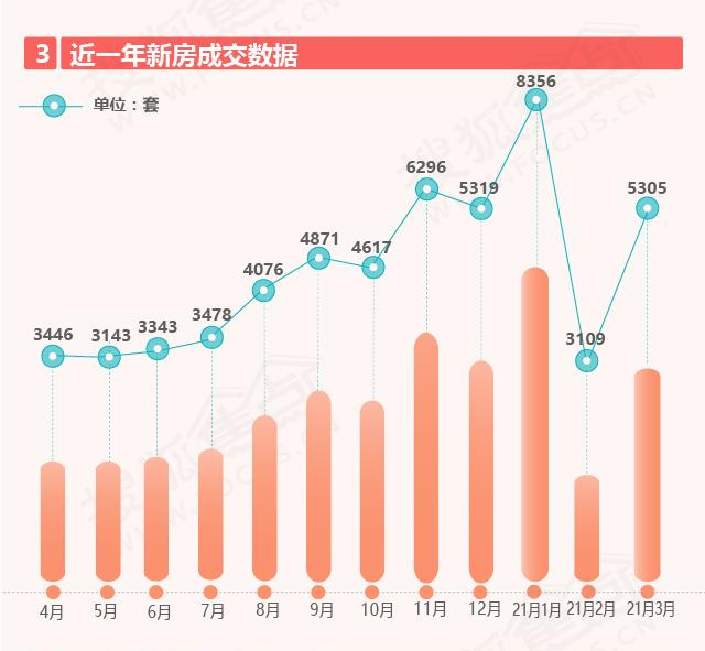 2021年3月的新房成交数据,超越了2020年前三季度所有单月成交量。从数据走势来看,从去年8月份开始,成交量开始飚升,历经“金九银十”、“开发商年末回款”、“年初七选一、三选一”等过程,成交量从4000余套到2021年1月达到了8000余套,而上月或因春节假期因素致使成交量有短暂下滑,本月5305套的成交量又将深圳楼市带回到火热期,看来深圳楼市小阳春已到来。
