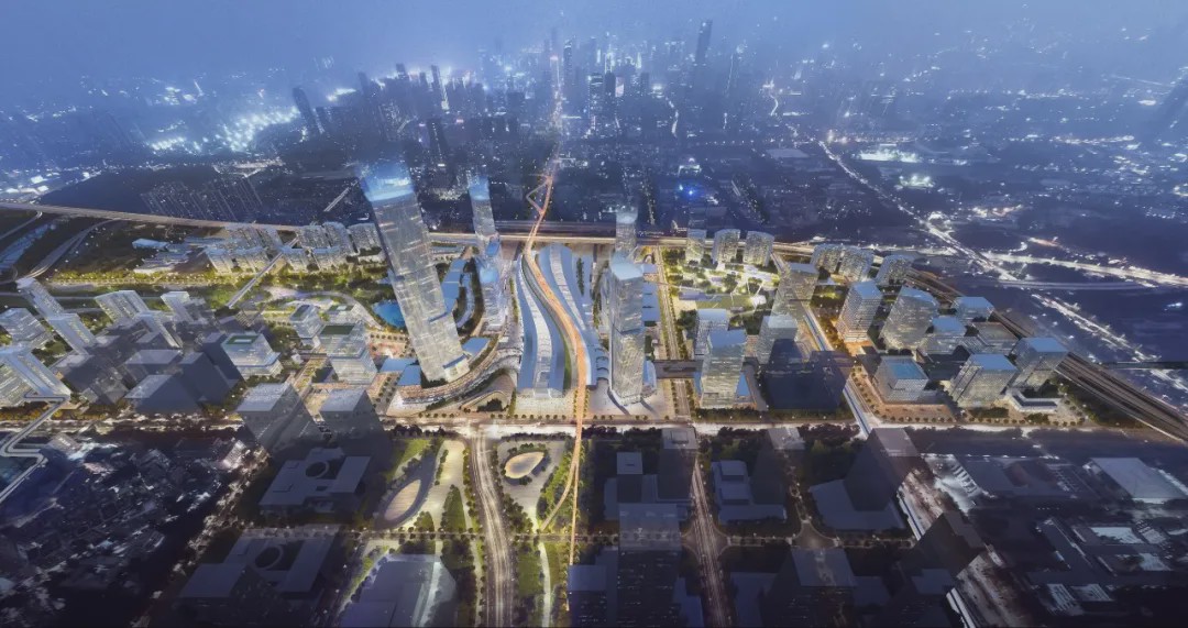 设计以立体分流和多维融合为策略,在空间平衡、垂直城市以及建筑空间三个层次上平衡城市开发与枢纽交通,创造融合一体、以人为本的站城枢纽;
