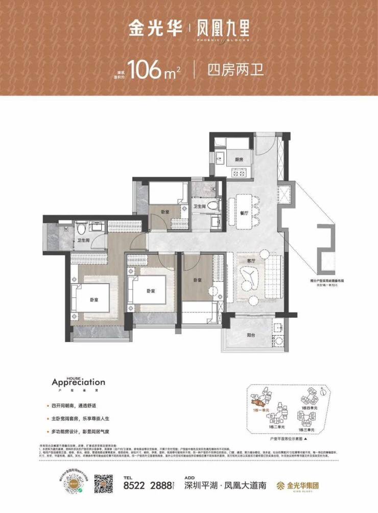 项目整体共有5个地块开发,位于03地块的金光华凤凰九里是首发项目,占地约1.4万㎡,建面约13.7万㎡。