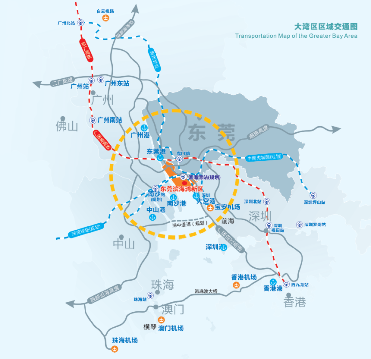 水路,滨海湾新区加虎门港,是东莞唯一的出海口。作为制造业重镇、“世界工厂”,这个位置的交通地位自不必多言。