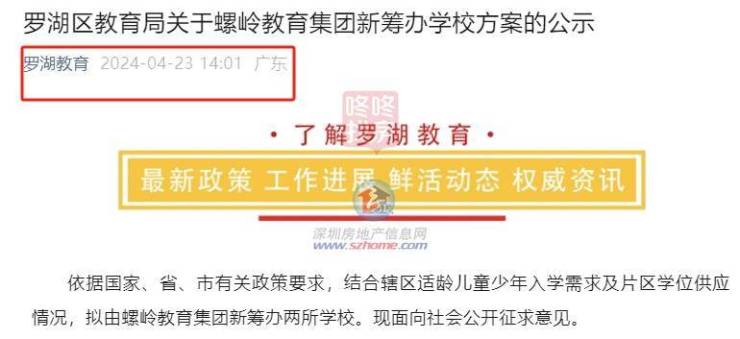 刚刚,罗湖教育局官方公众号发布最新《螺岭教育集团新筹办学校方案》,意见征求时间为2024年4月23日-4月29日。