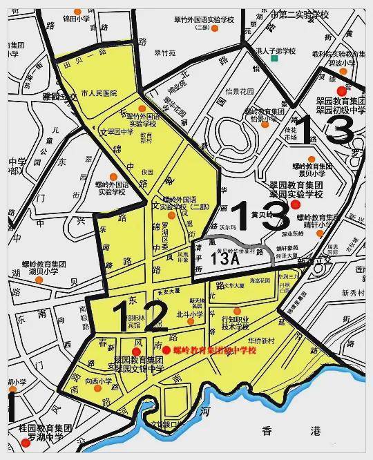 ● 新增一所螺岭教育集团筹办学校,叫螺岭湖贝学校,学区在初中12学区,学区覆盖到了螺岭小学本部(螺岭外国语实验学校)上学的孩子,新建学校离螺岭小学本部很近,不过接下来先在翠竹外国语实验学校借址办学。