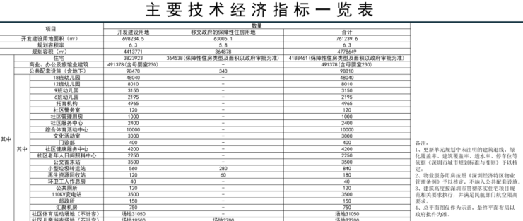 其中,开发建设用地规划容积包括住宅3823923㎡,商业、办公及旅馆业建筑491378㎡(含母婴室230平方米),公共配套设施98470㎡(含8所18班幼儿园、1所12班幼儿园、1所9班幼儿园、1所6班幼儿园、9处托育机构及社区相关配套服务中心)。