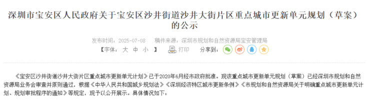 日前,深圳市规划和自然资源局宝安管理局公示井街道沙井大街片区重点城市更新单元规划(草案)。这个项目即为大家所熟悉的宝安“金蚝小镇”,是深圳超级巨无霸旧改之一。
