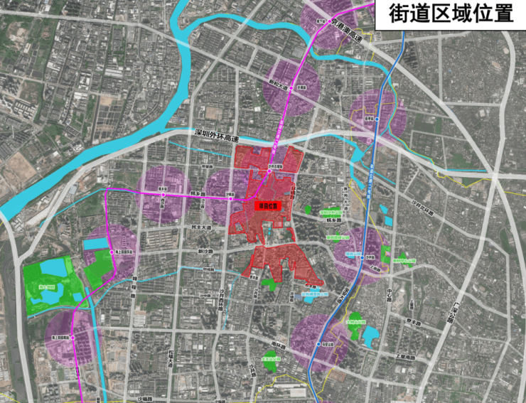 万丰社区大朗山片区旧改位于深圳市宝安区新桥街道南环路与中心路交汇处西侧,地铁11号线马安山站的东侧。