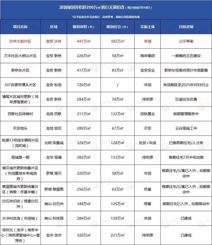 当前,深圳城市更新计划还在大力推动,巨无霸旧改项目不在少数。