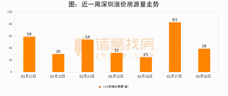 根据诸葛找房数据显示,深圳24小时涨价房源量为39套,较03月27日减少44套,环比下降53%。与此同时,涨价房源占比小幅回落,对于购房者来说是一个入市窗口期,购房者可抓住时机入市。