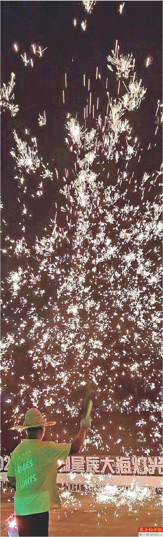 龙华湖边星空下,匠人们徒手用柳木勺舀起1600℃的铁水,奋力一击,霎时间,万千花火绽放于夜空之上,万点星辰坠落于山海之间,是穿越千年的灿烂光华,也是浴火重生的巨大能量……观澜湖生态运动公社“星辰大海灯光节”上演着独属于中国人的盛大浪漫在——非遗打铁花。每一次绽放,都“直击”人心,震撼于“铁树银花落,星辰万点开”的盛大浪漫、“银河落九天”的宏大气象,游客们发出阵阵惊呼,“绝美!”