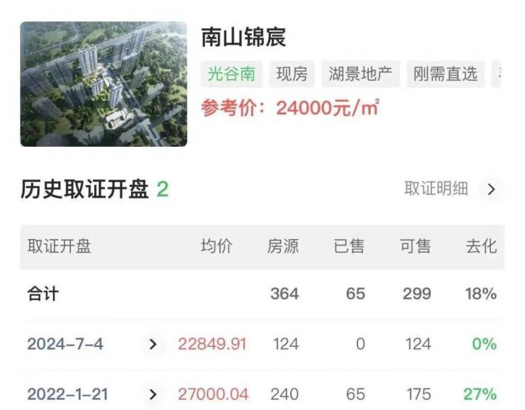 在第三方平台上,渠道经纪人小张告诉《每日经济新闻》记者,南山锦宸项目2022年初曾进行备案取证,彼时均价精装价一度达到3万元/平方米,也是光谷三环外首个突破每平方米3万元备案价的高层住宅项目。