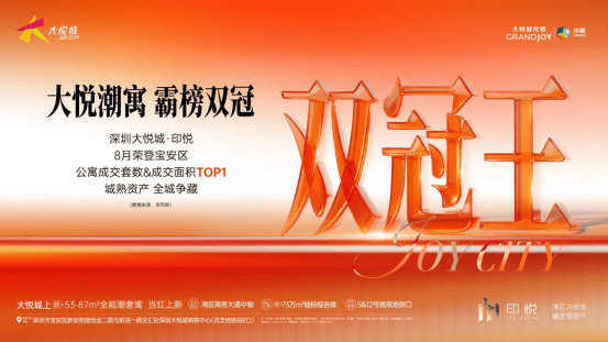 作为深圳大悦城购物中心上盖的稀缺独栋公寓资产,印悦公寓在大悦城开业后持续热销出圈,2025年8月荣登宝安区公寓成交面积&成交套数双冠王(数据来源:克而瑞)。项目国庆加推“双钥匙”爆款户型新品,再续热销佳绩。