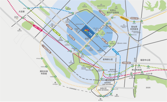深圳大悦城综合体扎根城熟宝安芯,湾区商务大道中轴,前海·宝中世界级地标商圈(信息来源:宝安日报);坐拥5&12号线双地铁口,集空港、海港、高铁、城际铁路、城市轨道、高速公路等六位一体国际交通网(信息来源:滨海宝安)。轻松通达全城乃至粤港澳大湾区各大城市,为生活与商务出行提供极大便利。