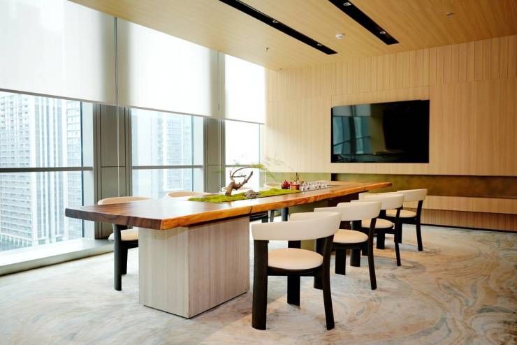 在空间品质上,项目同样精益求精:户户方正实用,少梁少柱设计,约4.2米开阔层高最大化自然通风与采光,更坐拥270°环幕视野,将山轴园盛景尽收眼底,重塑商务空间的非凡尺度与境界。