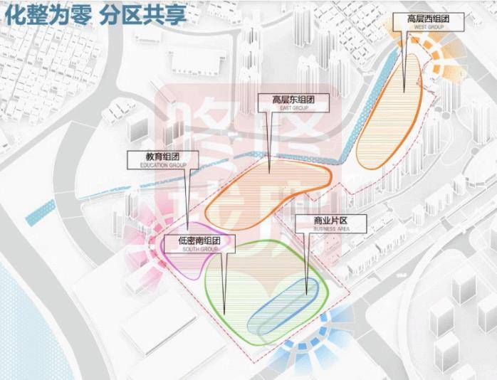 项目地块由西向东,涵盖了门户商业、叠拼洋房与小高层、36班九年一贯制学校、18班幼儿园、高层住宅。