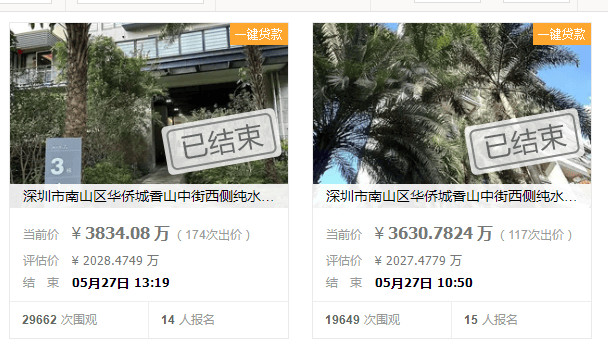 近期,深圳湾、华侨城三套顶豪成功拍出,并且每场均有超10名买家竞拍,最终这三套房源全部高于起始价两倍多的价格成交。