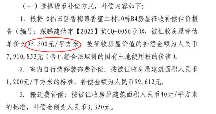 以一套建面约83.01㎡的房屋来计算,货币补偿总价约902万。这个补偿单价,是当时深圳棚改项目里最高的了。