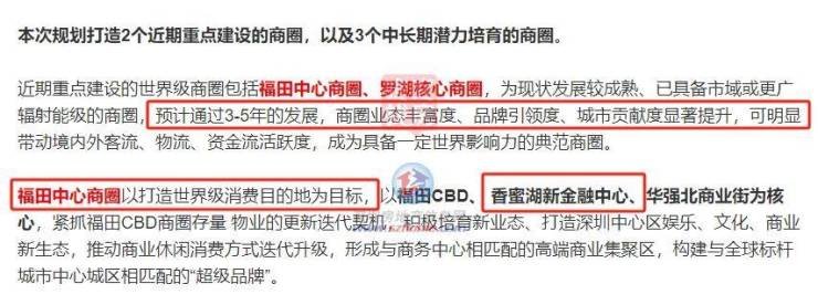 日前,深圳发布了商业网点规划(2025-2035)(以下简称《规划》)显示,近期打造的2个世界级商圈里就包括福田中心商圈,其中包括香蜜湖新金融中心。
