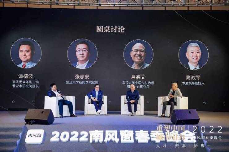 随后,在南风窗常务副主编兼城市研究院院长谭德波的主持下,复旦大学新闻学院教授张志安,武汉大学中国乡村治理研究中心研究员吕德文,木屋烧烤创始人隋政军开启了高端尖峰对话,多角度、多层次地探讨了城市治理的相关话题。