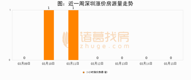 根据诸葛找房数据显示,深圳24小时涨价房源量为0套,较03月14日持平。