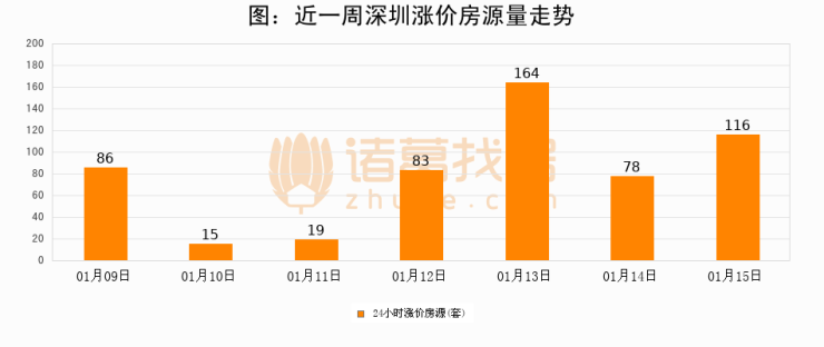根据诸葛找房数据显示,深圳24小时涨价房源量为116套,较01月14日增加38套,环比上涨48.7%。与此同时,涨价房源占比小幅扩大,业主信心有所提升。