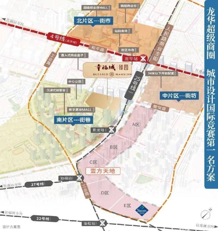 幸福城I臻园直线距离地铁4号线龙华站约400米、直线距离地铁25号线景龙站(在建中,预计2028年开通)约200米,多地铁和城市快线环伺,未来可速达机场、前海、福田中心区,即是繁华的出发地,也是繁华的目的地。