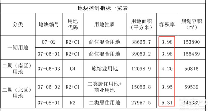 二期(北区)分为2个地块,07-06-02为二类居住用地+商业用地,用地面积约1.5万平,规划建筑面积5.95万平,容积率为3.95;07-08-01为二类居住用地,用地面积约2.79万平,规划建筑面积约14.83万平,容积率为5.31。