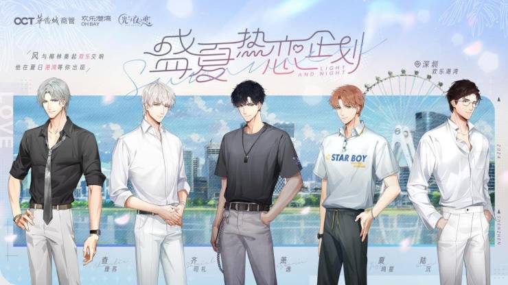 此次盛夏热恋企划,在欢乐港湾商业街区、“湾区之光”摩天轮下设有多个打卡点位,在摩天轮下,邂逅浮梦海滩与爱的告白,在喧闹的商业街区,留下你与“他”的专属合影,萧逸、陆沉、齐司礼、查理苏、夏鸣星五位男主角,在专属爱的站台等你出现。
