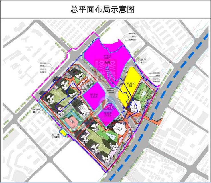 项目范围内含2块二类居住用地(配套一所18班幼儿园),3块二类居住用地+商业用地,2块商业用地,1块教育设施用地(36班9年制学校),2块文化遗产用地。