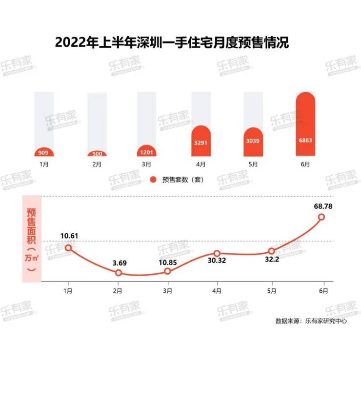 2、2022年上半年深圳一手住宅月度预售情况