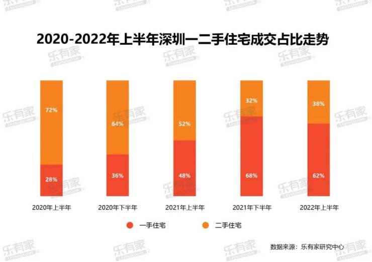 2、2020-2022年上半年深圳一二手住宅成交占比走势