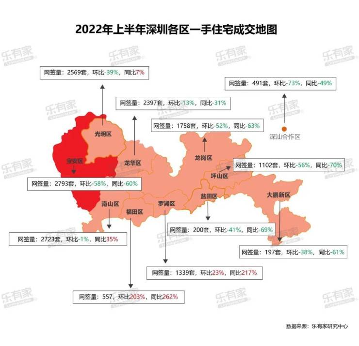 3、2022年上半年深圳各区一手住宅成交地图