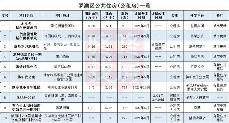 在公租房方面,罗湖区目前有10个项目,主要以城市更新配建、社会存量住房租购两种方式取得。