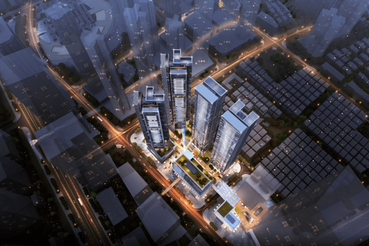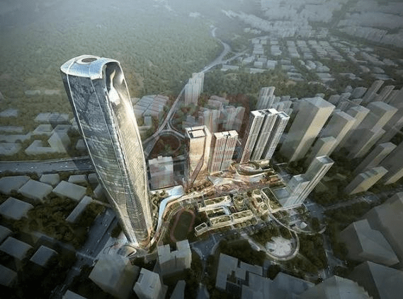 地块由5栋楼组成,1栋办公楼、1栋商务公寓、3栋住宅楼(含1栋保障房),较高建筑68层,约218米。