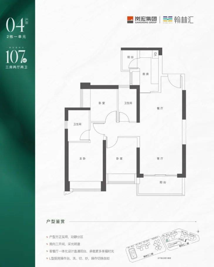 岗宏翰林汇首批计划推出535套房源,主推户型为建面约73-131㎡2-4房。其中建面约73-83㎡户型主打2房,建面约89㎡-93㎡户型为3房1卫,建面约99-107㎡为3房2卫,四房则要去到建面约131㎡的户型。